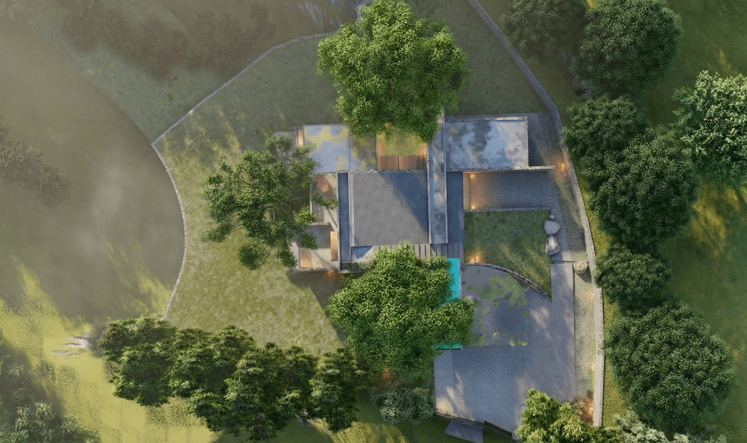 A hillside farmhouse in Pashta designed to integrate architecture, terrain, and open space into a single continuous landscape.