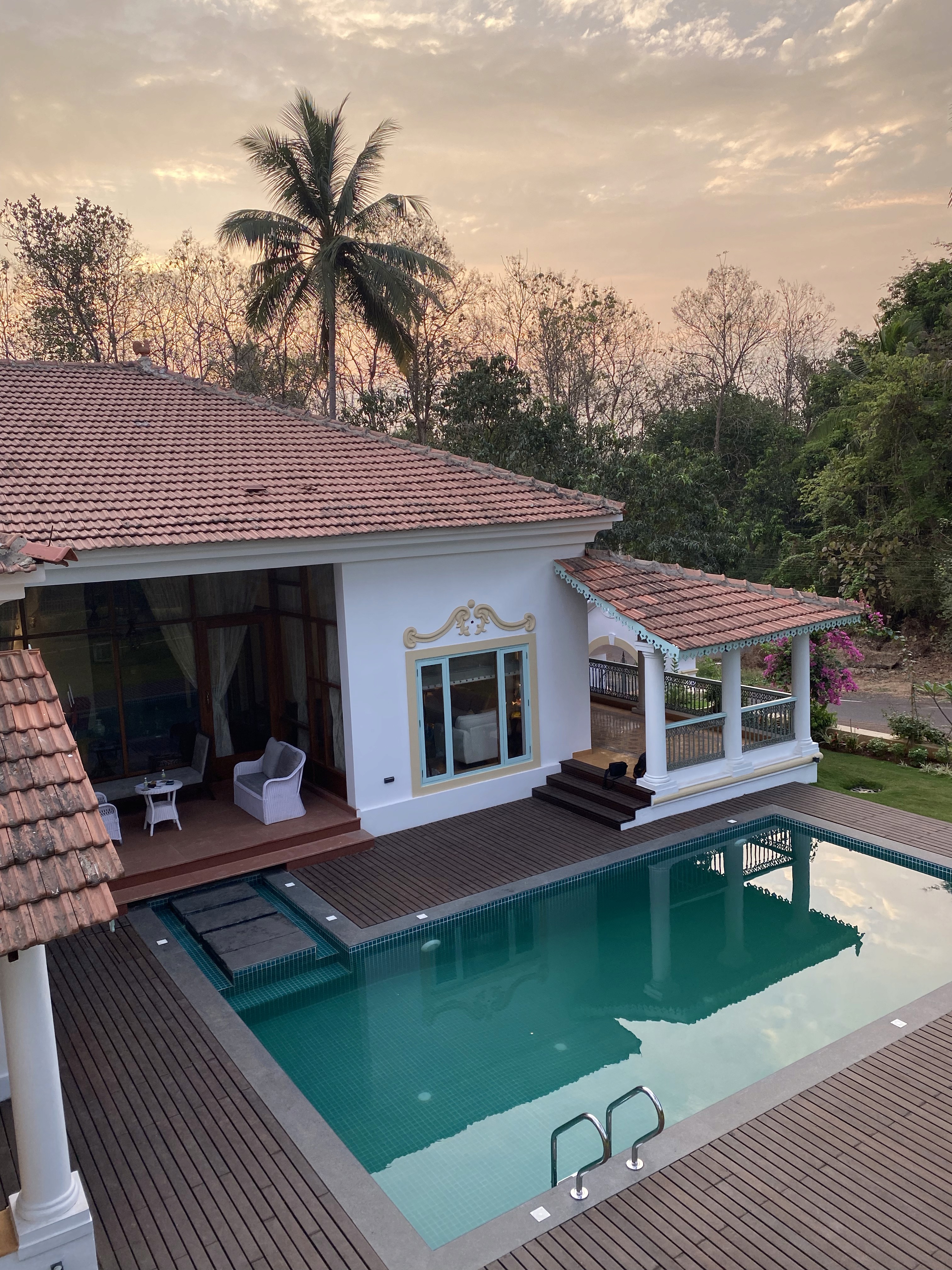A single-storey post-retirement home on Divar Island, Goa, designed to integrate with the local Indo-Portuguese village fabric and everyday rhythms of the place