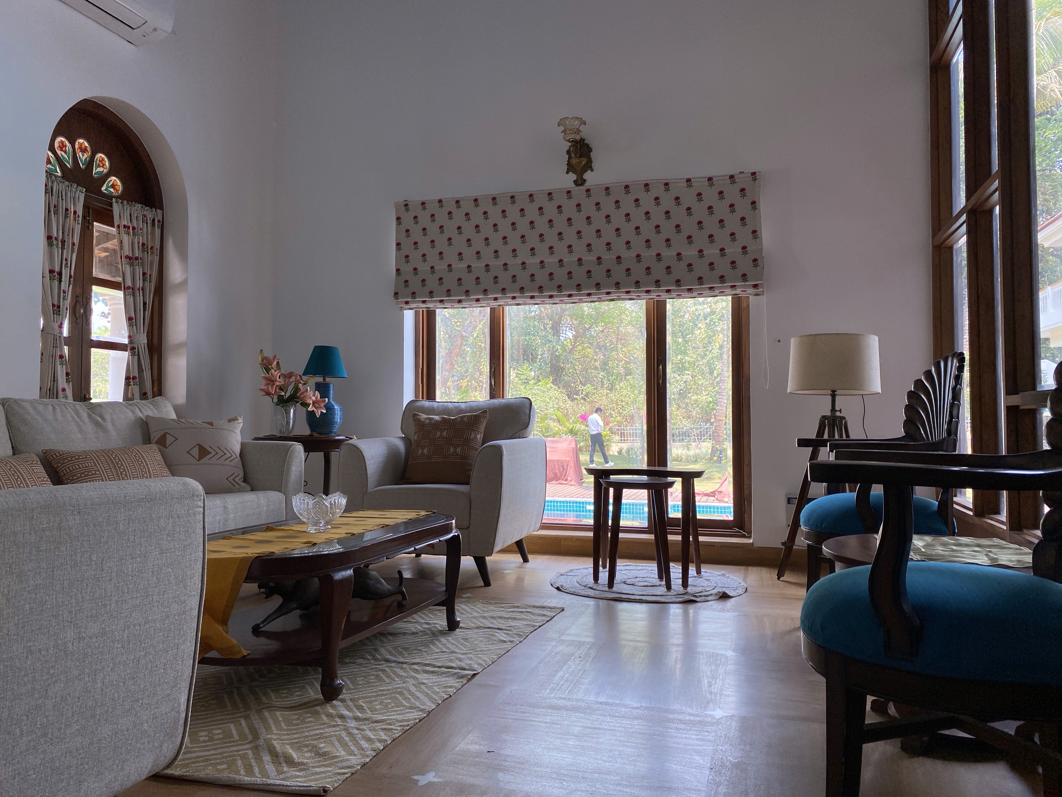 The architecture draws from Indo-Portuguese building traditions through proportion, material choice, and detailing, without direct replication. Construction was carried out in close coordination with local craftsmen and contractors, allowing regional building practices to guide execution. Materials such as sandstone and granite were selected for their durability and local relevance, helping the house age naturally within its context.